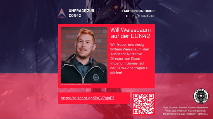 Wir freuen uns riesig, William Weissbaum, den Assistant Narrative Director von Cloud Imperium Games, auf der CON42 begrüßen zu dürfen! William ist ein kreativer Kopf hinter der epischen Lore von…